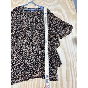 Catherines Plus Size 3X Tunic Top – Leopard Print, Pleated, Flutter Sleeves