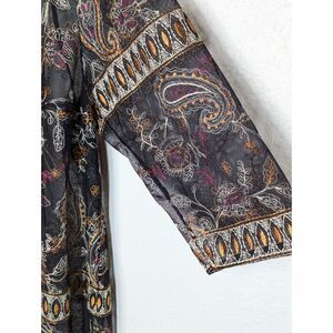 Catherines Plus Size Boho Sheer Open Front Top Size 1X Embroidery Black Paisley