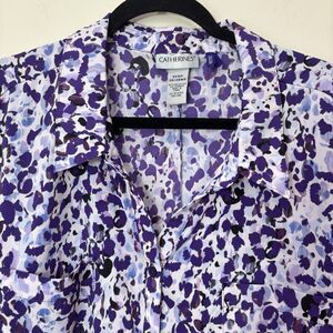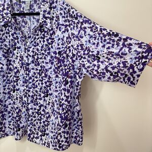 Catherines Purple Button Up Tunic Top Women 3Xp Animal Print Flowy Lightweight