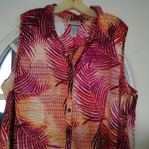 Catherines sleeveless top size women's 1X 18/20W. It is purple multi-colored button down longer at the bottom on the sides great condition.