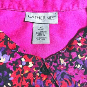 Catherines Purple & Red Floral Button Up Top Size 3X