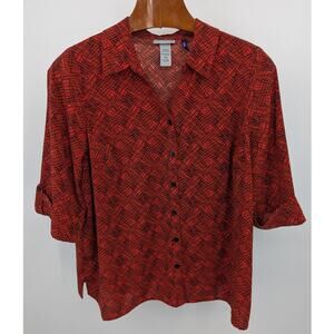 Catherines Red Black Abstract Button Front Blouse Women’s 0XWP Petite 14/16