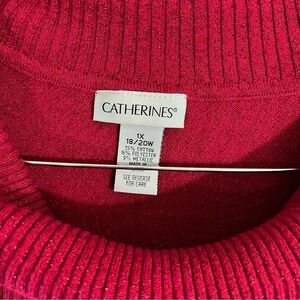 Catherines Red Metallic Sparkle Knit Tank 1X Draped Rolled Turtleneck Sweater