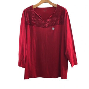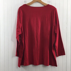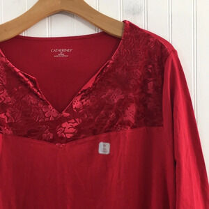 Catherines Red Popover Velveteen Cotton Blouse Womens 2X 22/24W Long Sleeve