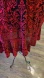 Stunning red and black velvet ruffle dress by Catherines. Features intricate lace design. Perfect for elegant occasions.