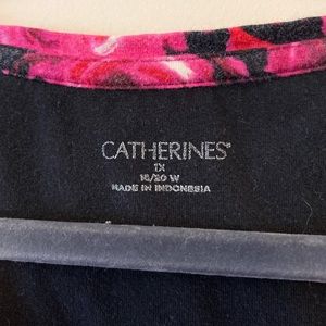 Catherine’s brand t-shirt with a print of red and pink roses all over. So pretty! V-neck, mostly cotton, has some stretch to it, 1/2 length sleeves. Worn several times but has lots of life left in it, in excellent condition, comes from a smoke free home!