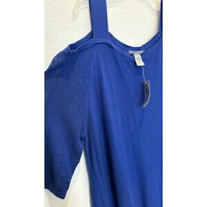 Catherines Royal Blue Textured Cold Shoulder Sweater3/4 Sleeves Size 2X NWT