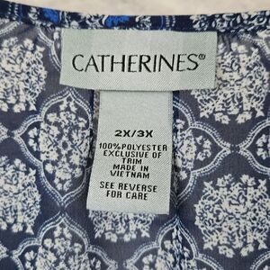 Catherines Scarf Print Kimono Blue Lace 2X/3X Casual Weekend Everyday Feminine