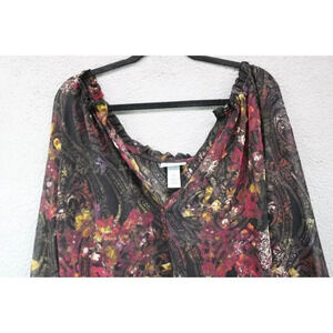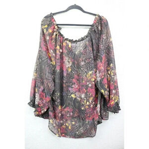 Catherine's Sheer 3/4 Balloon Sleeve Blouse-Size 2X. The material is 100% Polyester. Laying flat measuring armpit to armpit it is 27'' and 35'' in length.