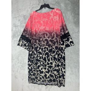 Catherine's Shift Dress Size 2X Pink Ombre Scrolls 3/4 Sleeve Boho Western Rodeo