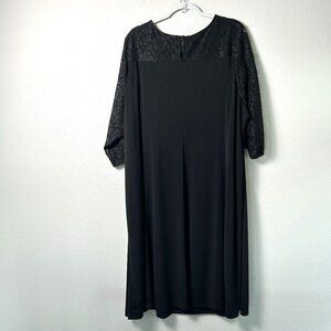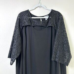 Catherines Shift Dress Size 3X Black Lace Elbow Sleeve Pullover Button Party