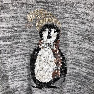 Catherines Shirt Womens 2X Penguin Sequins Gray Marl Ruched Tie Sides 3/4 Sleeve