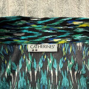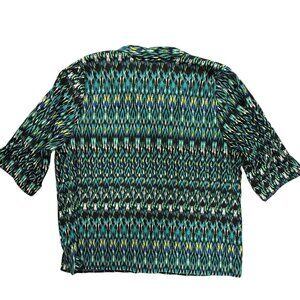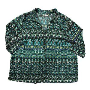 Catherines Shirt Womens 2X Plus Button Up Cuffed Sleeve Green Blue Geometric Top