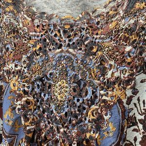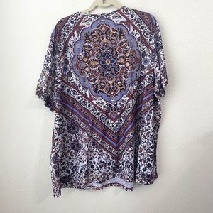 Catherines Shirt Womens Size 2X Boho Short Sleeve Floral Paisley Beaded Front