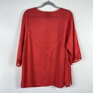 Catherines Size 1X Beaded Embroidered 3/4 Sleeve V-Neck Blouse Top Coral