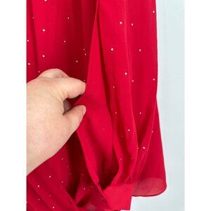 Catherines Split Long Sleeve Embellished Faux Wrap Blouse Size 3X