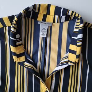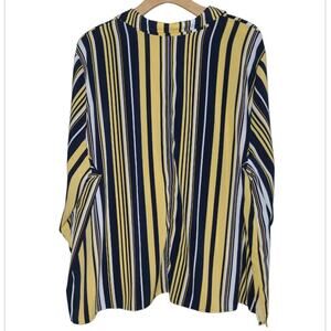 Catherine's Striped Button Up Roll Tab Shirt 4X Blue Multi Office Preppy Stretch