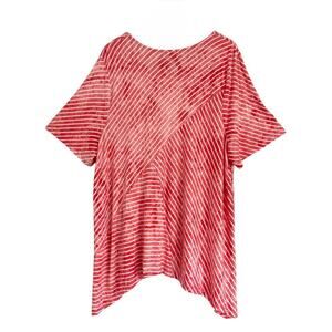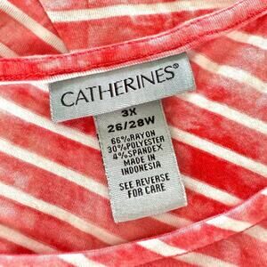Catherine’s Striped Top Tunic Women’s sz 3X 26/28 Cap Sleeve Asymmetrical Coral