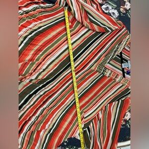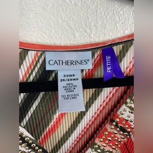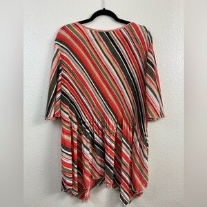 Catherines Studded V-Neck Short Sleeve Stripe Summer Lightweight Beach Boho Orange Coastal Cottagecore Vacation Blouse Top plus 3X Petite