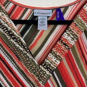 Catherines Studded V-Neck Short Sleeve Stripe Summer Lightweight Top plus 3X P