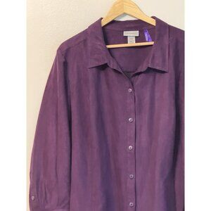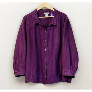 Catherines Suede Southwestern Button Up Top Size 3XP Jewel Tone Purple Holiday