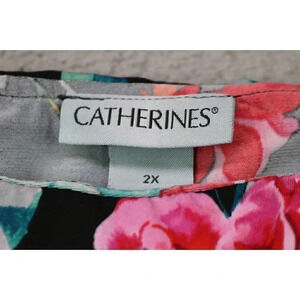 This is a Catherines silky dress for a lady that is a size 2XL. It is very pretty and feminine. It is black with florals. It measures laying flat: Armpit to armpit-24.75" and the length from the top of the strap to the bottom of the hem is 43.25". It is in great condition.