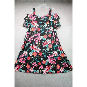 Catherines Summer Silky Flowy Black & Floral Dress-Size 2XL