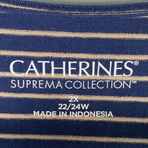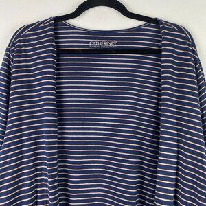 Catherines Suprema Collection Cardigan Size 2X Navy Tan Stripe 3/4 Sleeves Open