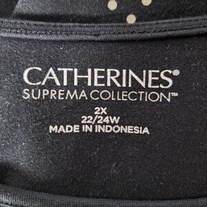 Catherines Suprema Collection blouse top in plus size 2X (22/24W) with a black and white polka dot pattern.
