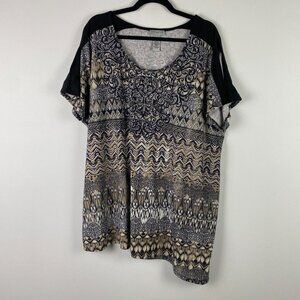 Catherines T Shirt Womens 1X Short Split Sleeves Embellished Asymmetric Scoop