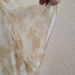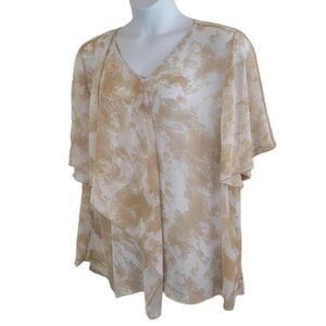 Catherines Tan & White Printed V-Neck Flutter Sleeve Draped Blouse Size 2X