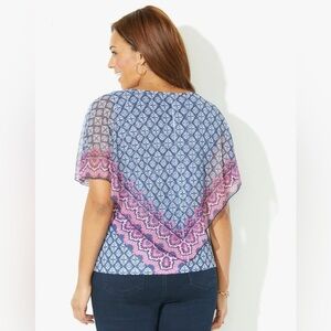 Catherines Top 1X Poncho Duet Overlay Layered Tunic Paisley Geo Fairy Embellish