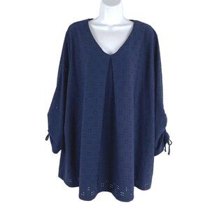 Catherines Top 2X Eyelet Blue Ruched 3/4 Sleeve Polyester Spandex CJ-1274