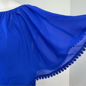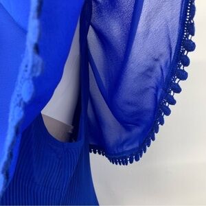 Catherines Top Blouse 4X Micro Pleats Flowy Overlay Blue Scallop Trim