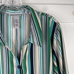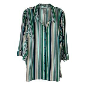Catherines Top Button Up Shirt Womens Plus Size 1X Striped Blouse 3/4 Sleeve