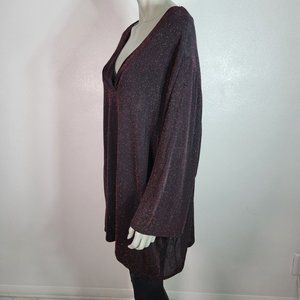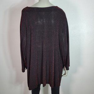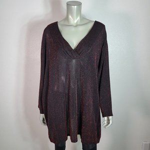 Catherines Top Plus Size 4X 30/32W Red Metallic Lightweight Stretch Casual Red V-Neck Pullover Long Sleeve