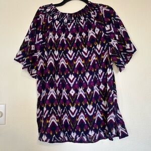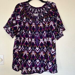Catherines Top Size 1X Purple Floral Peasant Boho Smocked Tassel