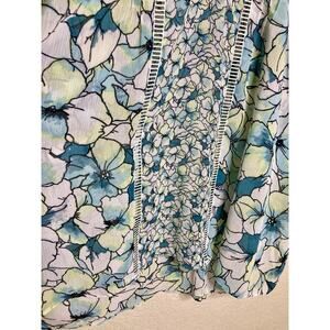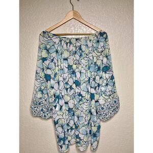 Catherines Top Size 2X 22/24 Chiffon Tunic V-Neck 3/4 Sleeve Open Weave Trim