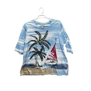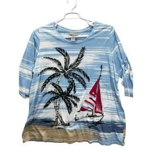 Catherines Top Sparkle Knit 3/4 Sleeve Women’s Plus Size 1X Blue