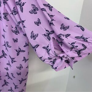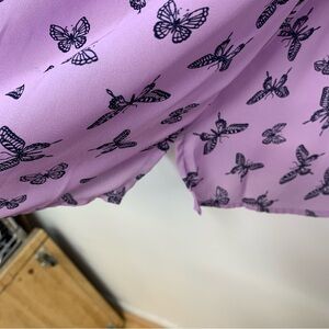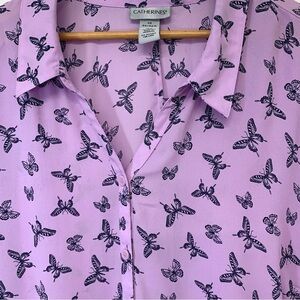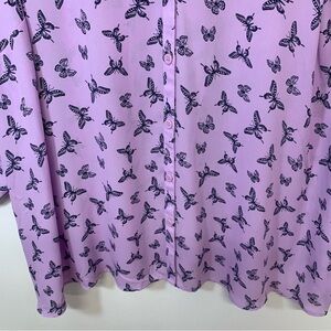 Catherines Top Woman 4XL Button Up Butterfly Print Purple Lilac Casual Office