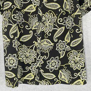 Catherines Top Women 16 W Button Up Floral Short Sleeves V-Neck Casual Travel