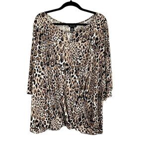 Catherines Top Women 1X Brown Animal Print Neutral Capsule Twee Safari Travel