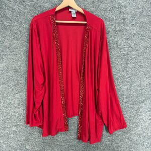 Catherines Top Women 3X Plus Red Open Front Sequin Long Sleeve Casual Solid
