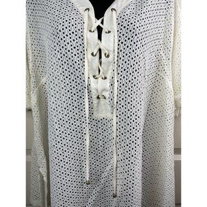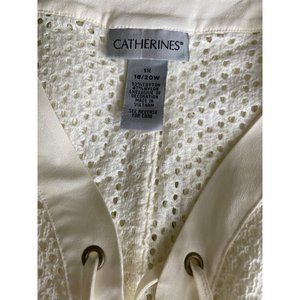 Catherines Top Women Plus Size 1X 18/20W Short Sleeve Ivory Knit Lacey Top Sheer
