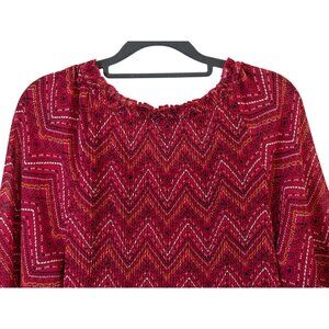 Catherines Top Women Plus sz 1X Artsy Pleated Sheer Stretch Boho Career Western