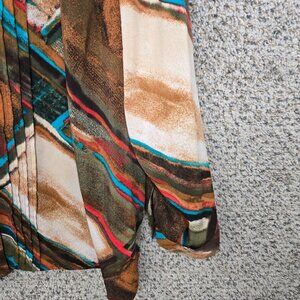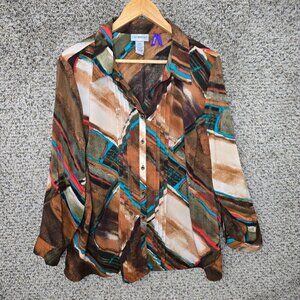 Catherines Top Womens 1XWP Petite Plus Brown Button Up Printed Roll Tab Sleeve