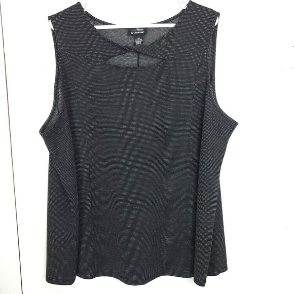 Catherines Top Womens 2X Any Wear Speckled Basic Cutout Neck Sleeveless Shell