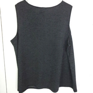 This gray tank top from Anywear by Catherines is a versatile piece perfect for travel, casual outings, or workwear. With a round neckline and pullover closure, this sleeveless top is made of comfortable polyester and rayon material that is machine washable. The regular fit and plus size type make it suitable for various body types. The classic theme and basic style of this top make it a timeless addition to any wardrobe. It is suitable for summer, fall, and spring seasons.