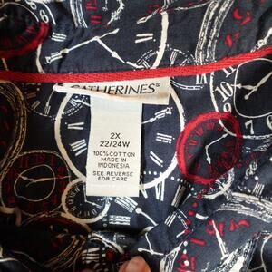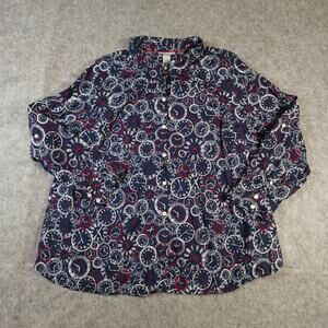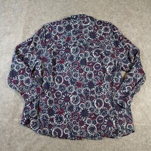 Catherines Top Womens 2X Bicycle Print Long Sleeve Button Front Casual Navy Blue