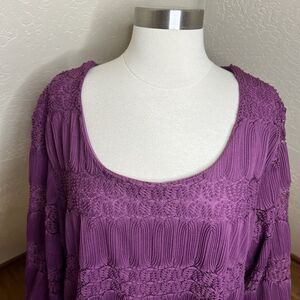 Catherines Top Womens 2X Purple Textured Lace 3/4 Sleeves Blouse Boho Stretch